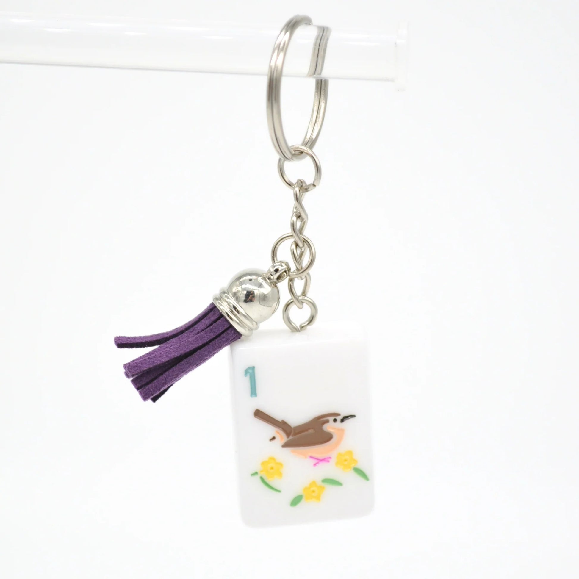 Mahjong Tile Keychain Carolina Wren Bam Bird Joker