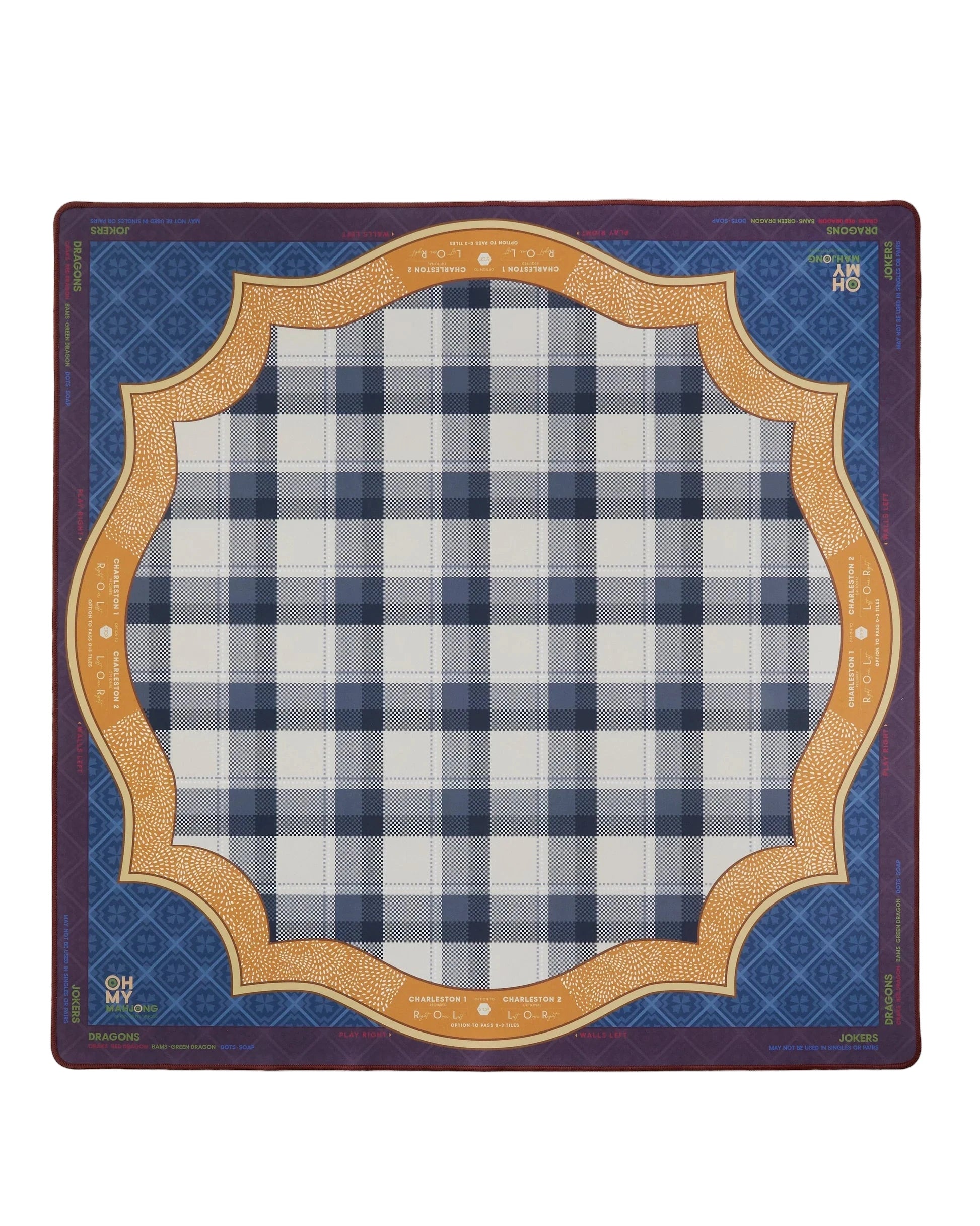 Introducing the Vanderbilt Mat — a distinguished and richly layered addition to your Mahjong setup, crafted for those who appreciate understated luxury and classic sophistication. Featuring a masculine-inspired plaid in deep blues, maroons, greys, and gold accents, this mat brings a warm, polished, and collegiate feel to your game night atmosphere.